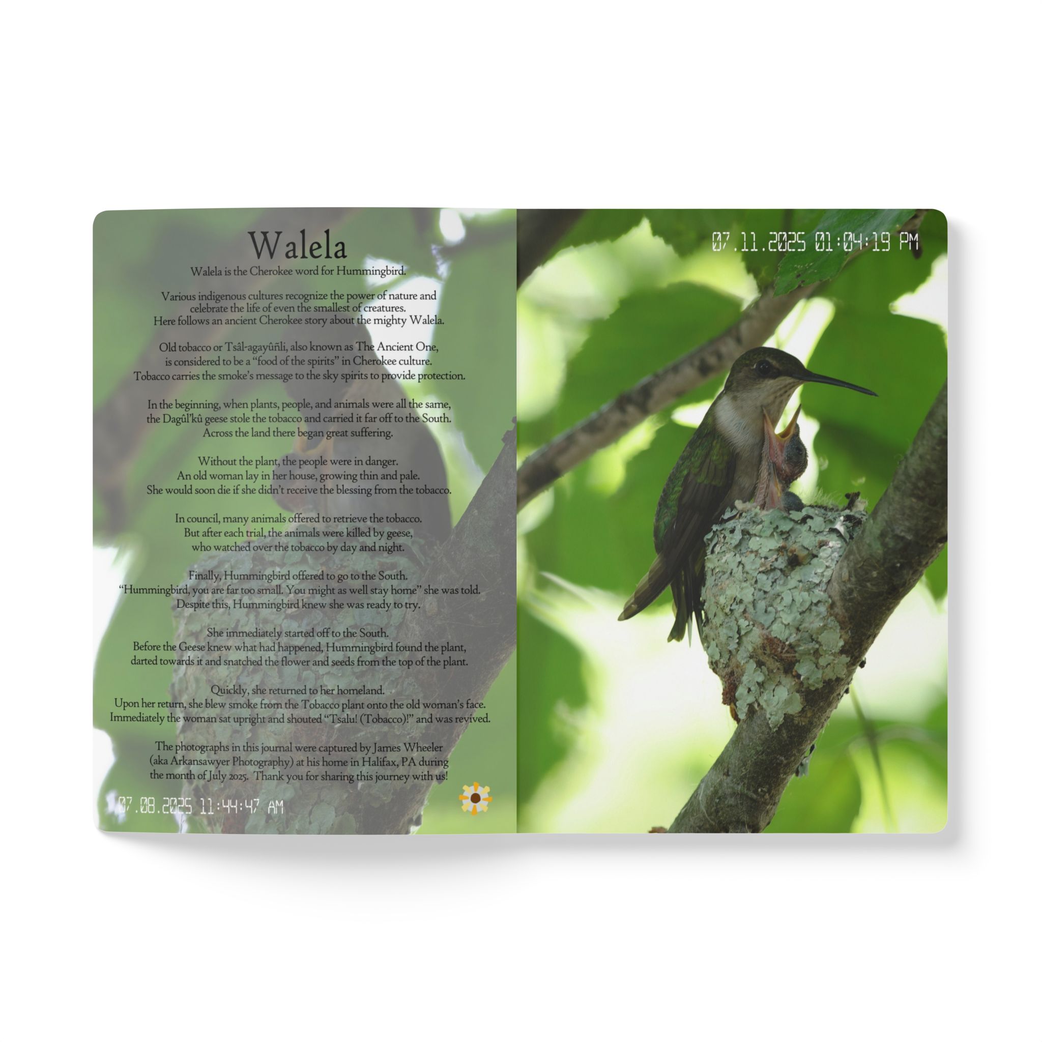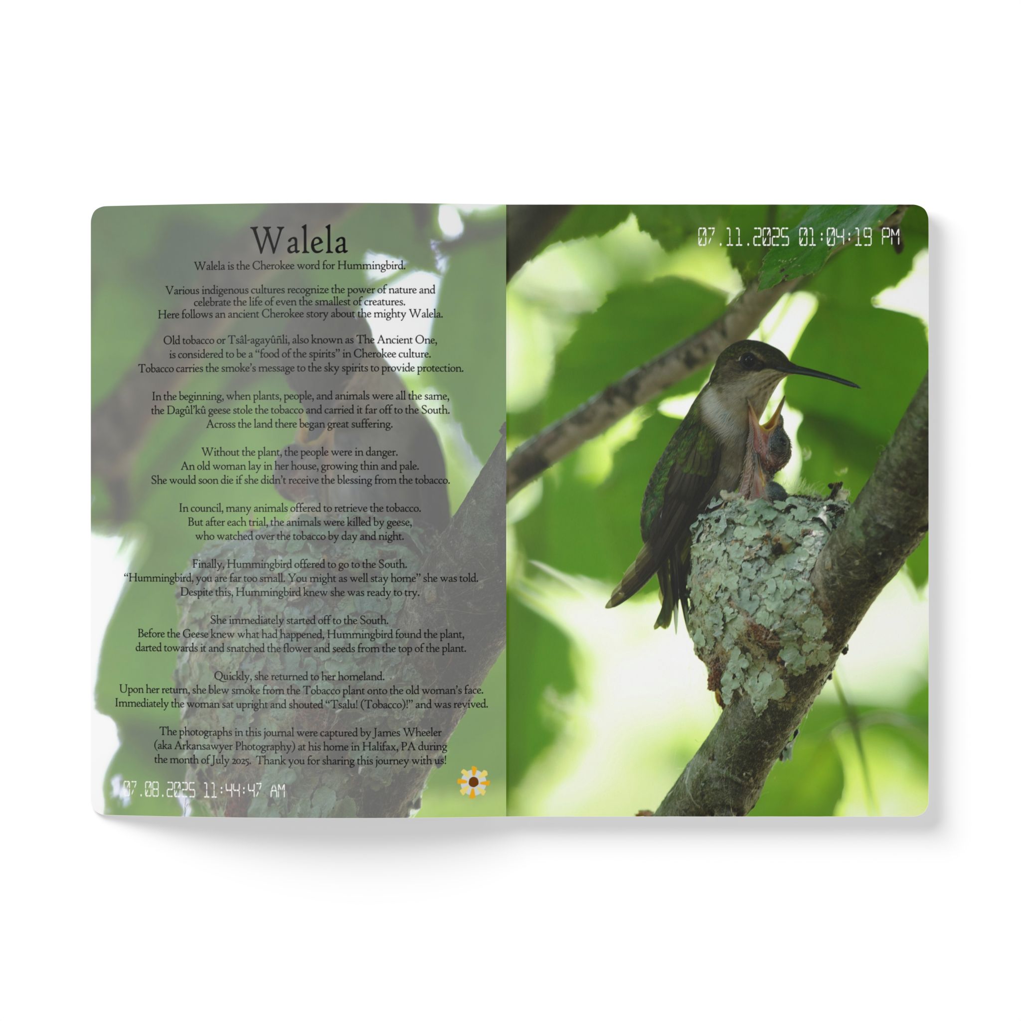 This journal documents the journey from empty nest to empty nest for a hummingbird family in July 2025 in Central Pennsylvania. It’s a beautiful work of art that you can share with others the miracle of life…