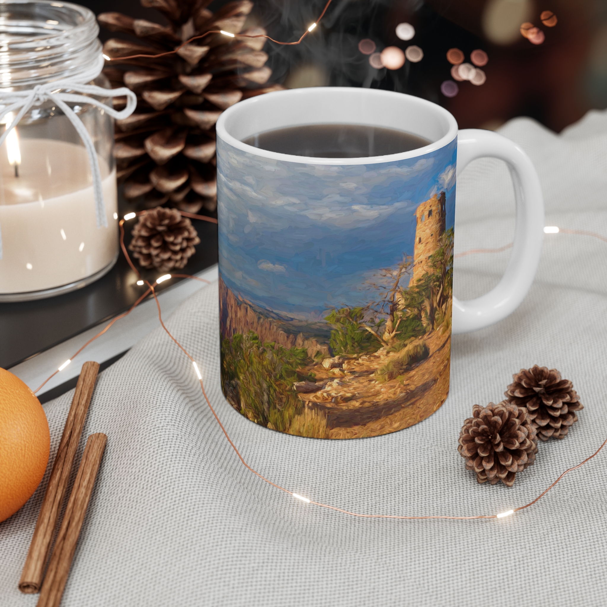 Desert View Watchtower is a 70-foot high stone building along the southern rim of the Grand Canyon. The four story structure was designed by architect Mary Colter. Completed in 1932, it was designed to resemble an ancestral Puebloan watchtower, but is much bigger than typical. Mary Colter was one of the few female American architects in her day, and designed various structures around the National Park. Her work helped to create a style of architecture blending Spanish Colonial and Mission Revival with Native American motifs and Rustic elements that became popular throughout the southwest.